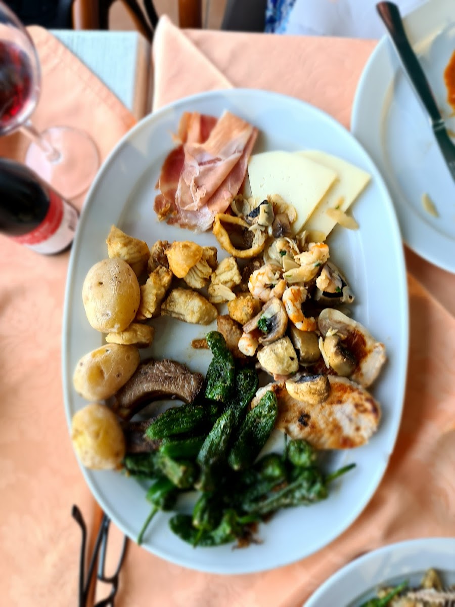 Food was ok acceptable for the money but the whole fish grill was wort it, also the service was ok I will say there are lots of other restaurants to choose from. At the end they serve you with a nic strawberry liquor