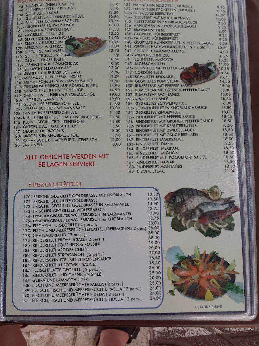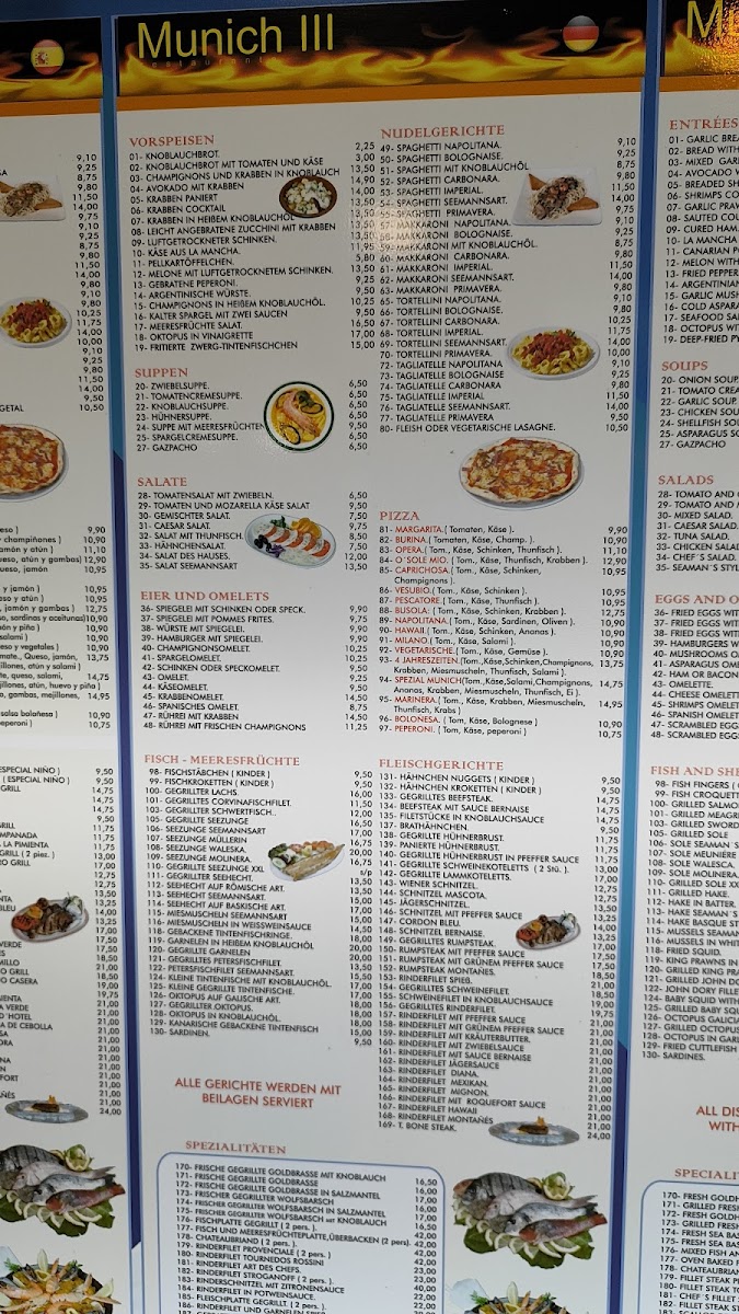 Introducing Munich III, a promising gem located along the beautiful shoreline of Maspalomas, Las Palmas, Spain. This restaurant captures the essence of coastal dining with a menu that balances freshness and flavor. Diners rave about the grilled whole fish, a standout offering that showcases the local catch, while options like juicy garlic prawns and tender grilled lamb chops reflect an undeniable mastery of flavor. The grilled octopus and Tintenfisch are also favorites, delivering a taste of the sea that many find irresistible.